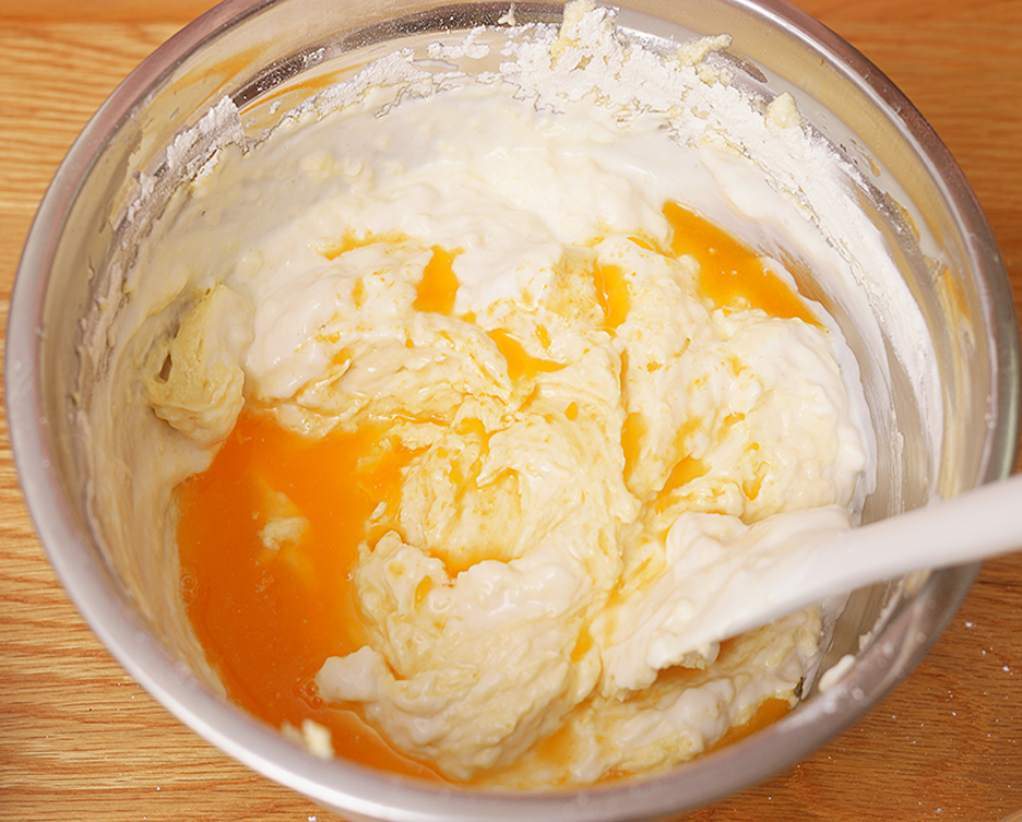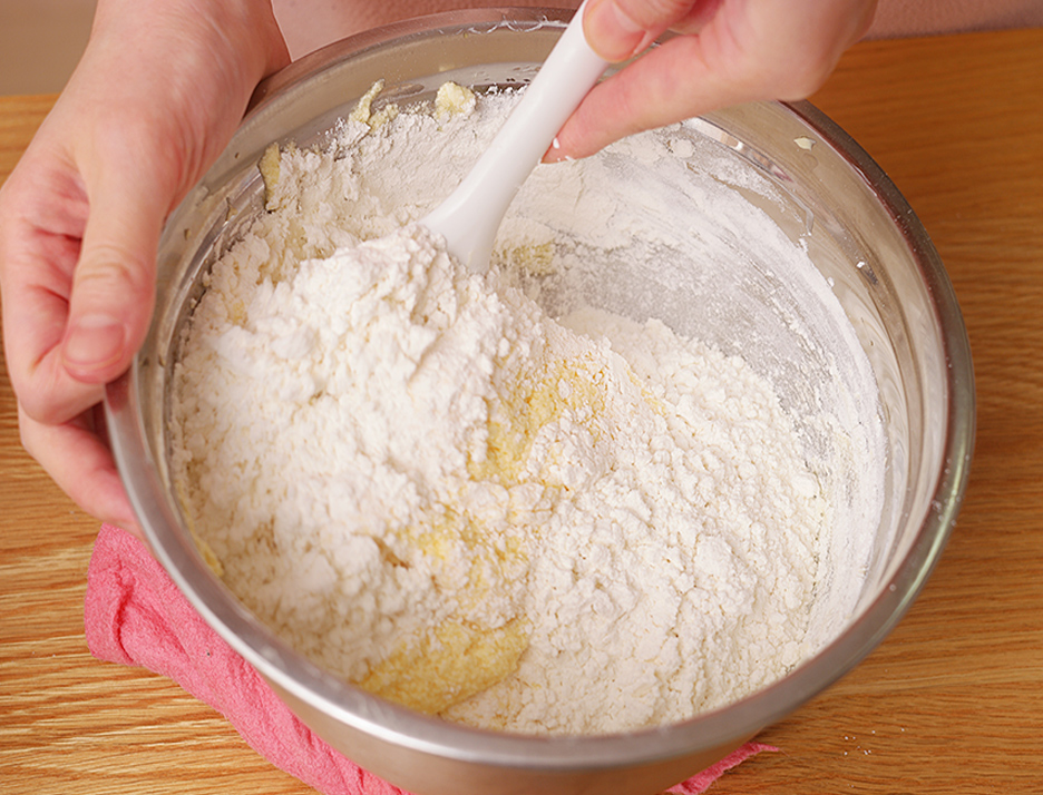 3. 가루류를 모두 체 쳐 넣고 섞어 줍니다.