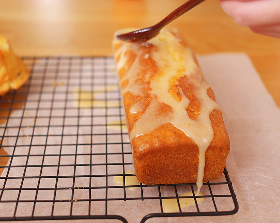 구워진 파운드케이크 위에는 잘 섞은 아이싱을 뿌리고
