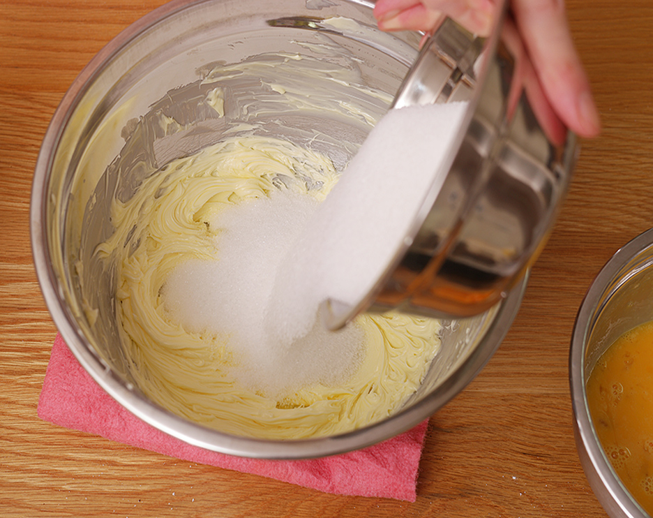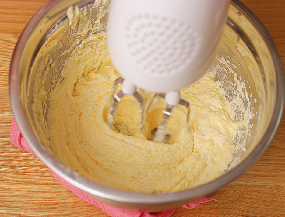 1. 먼저 상온의 부드러운 버터를 풀다가 설탕 넣고 휘핑합니다.