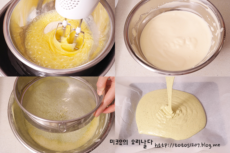 만드는 방법에는 달걀 노른자와 흰자를 분리해서 하는 별립법과 달걀 전란을 함께 넣어 거품을 내어 만드는 공립법이 있는데요.