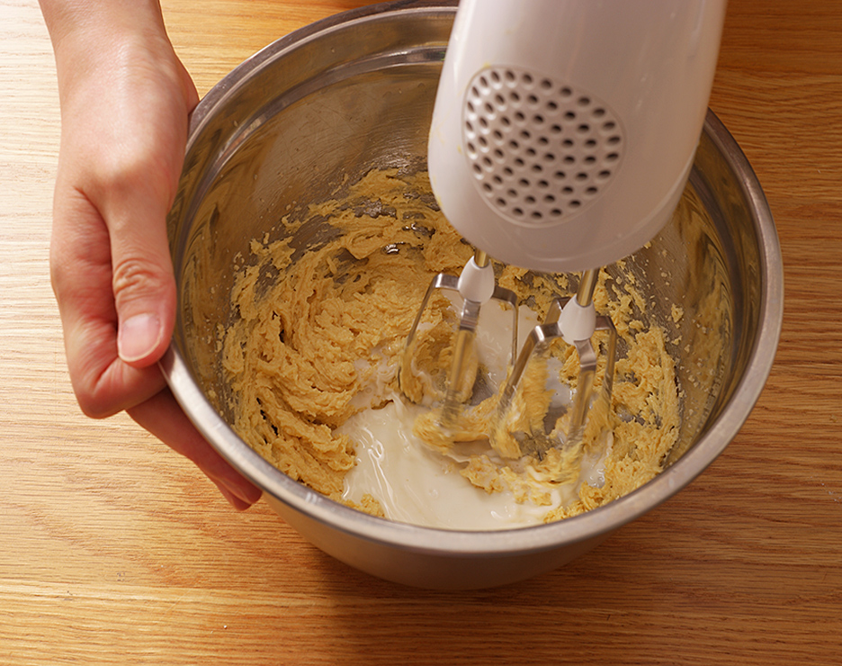재료 : 버터 50g, 황설탕 90g, 소금 1g, 달걀 1/2개, 우유 30g, 바닐라 익스트렉 5g,