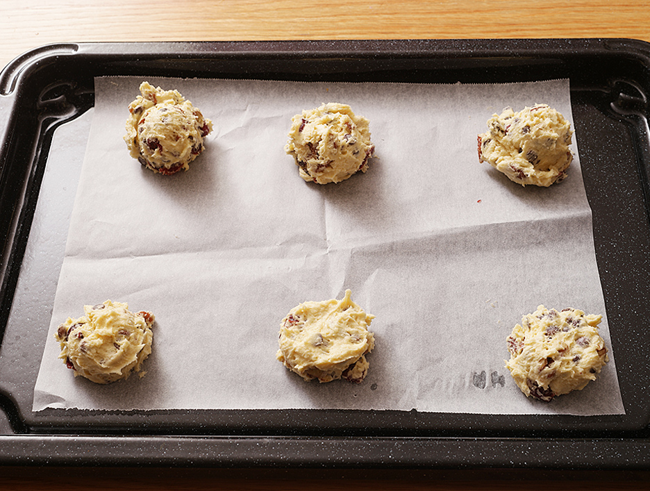 다 구워진 크랜베리 쿠키는 오븐 팬 위에서 그대로 식히면