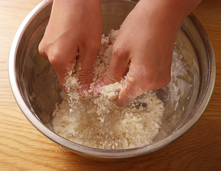 2. 포도씨유를 넣어서 부슬부슬하게 반죽합니다.
