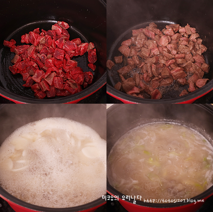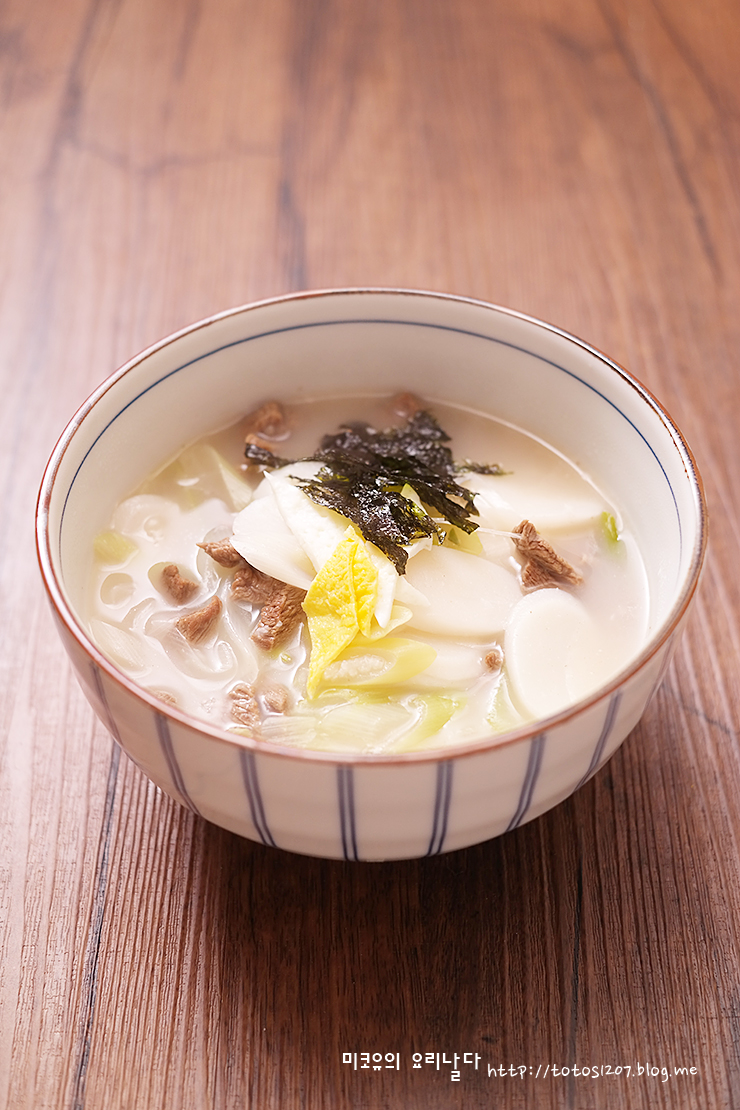 떡에서 나온 전분기와 소고기 국물이 합쳐져서.. 진하고 뽀얀 떡국이 완성되었습니다.