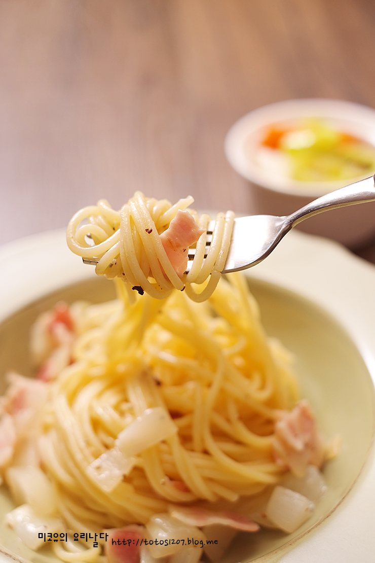 베이컨과 양파도 빼고, 오로지 마늘과 올리브유로만 만들어도 되세요. ^^