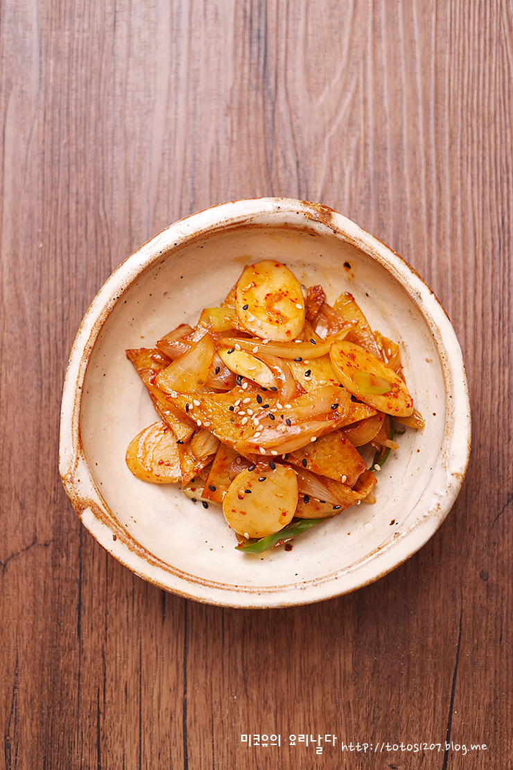 식당에서 찬으로 나오면 꼭 먼저 손이 가는 반찬이기도 하구요.