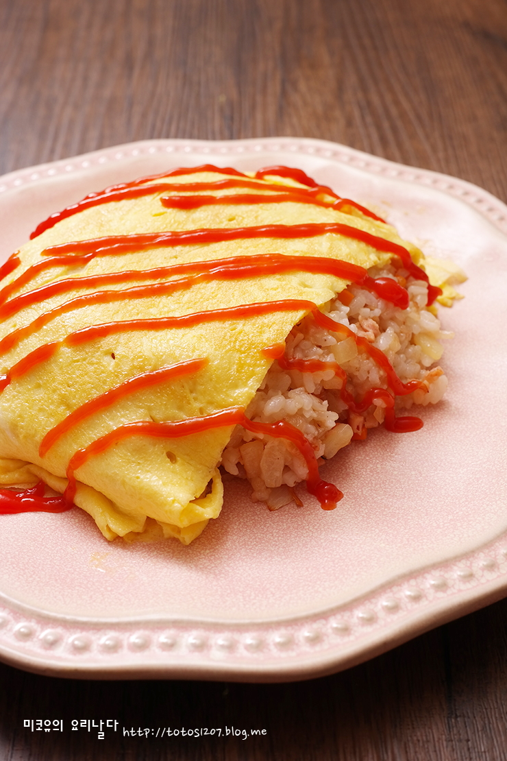 일본 오므라이스는 밥에도 케찹을 넣어 함께 볶지만,