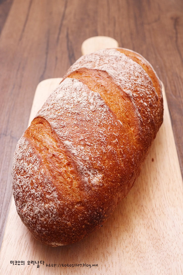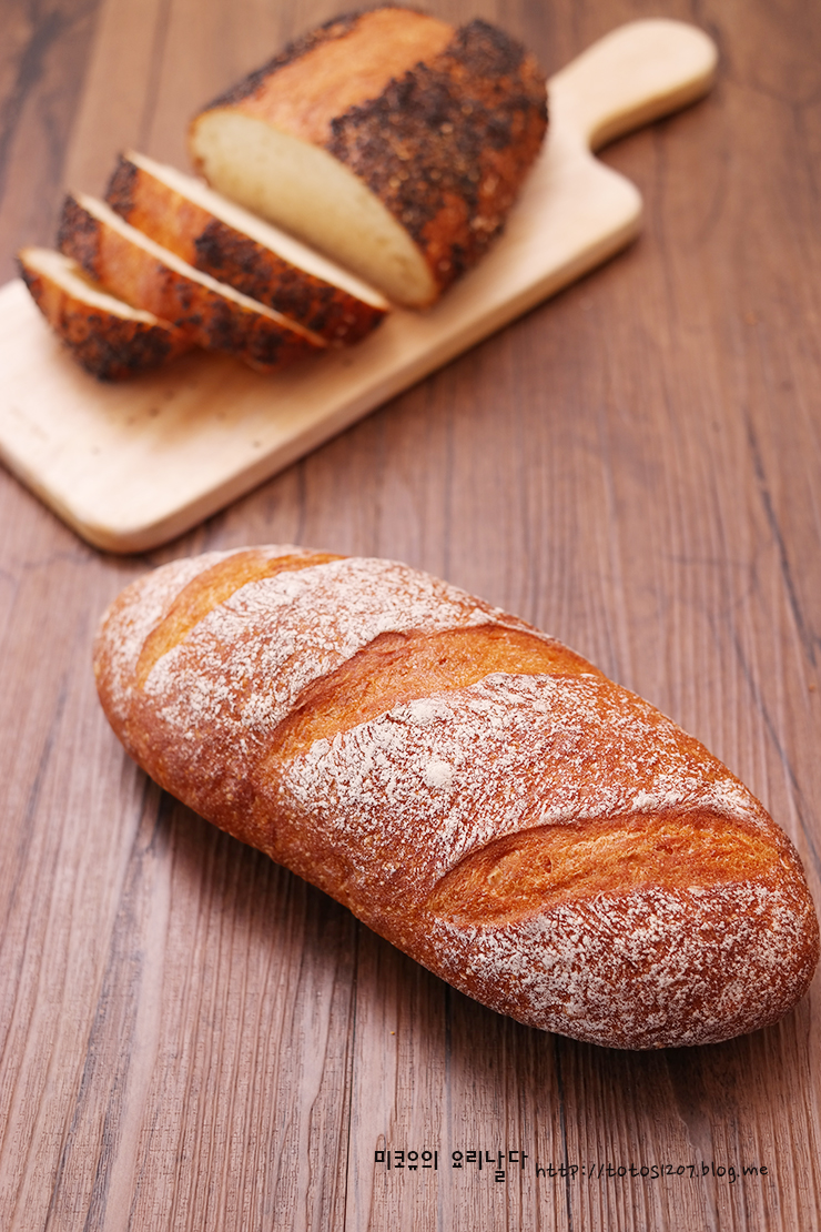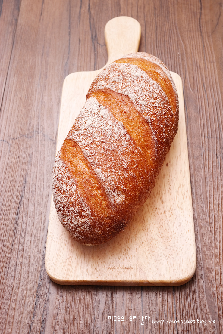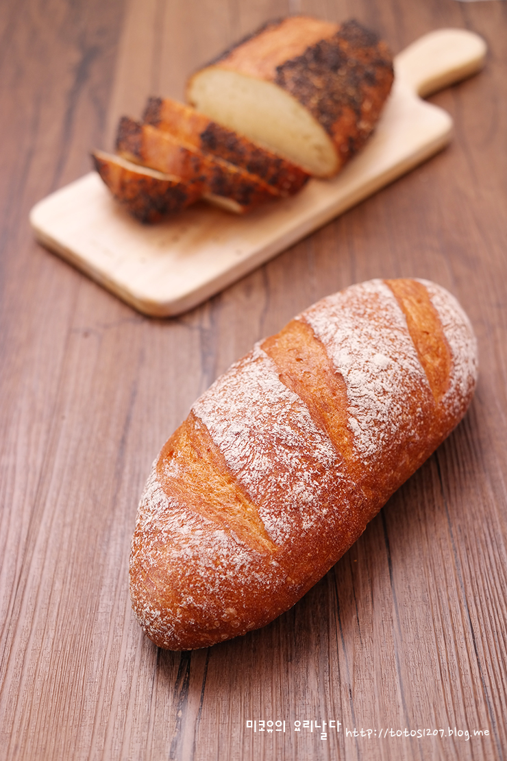 바게트나 프랑스 쿠페빵처럼 밀가루와 이스트, 소금 여기에 약간의 당분이 추가로 들어가는 러스틱 브레드입니다.