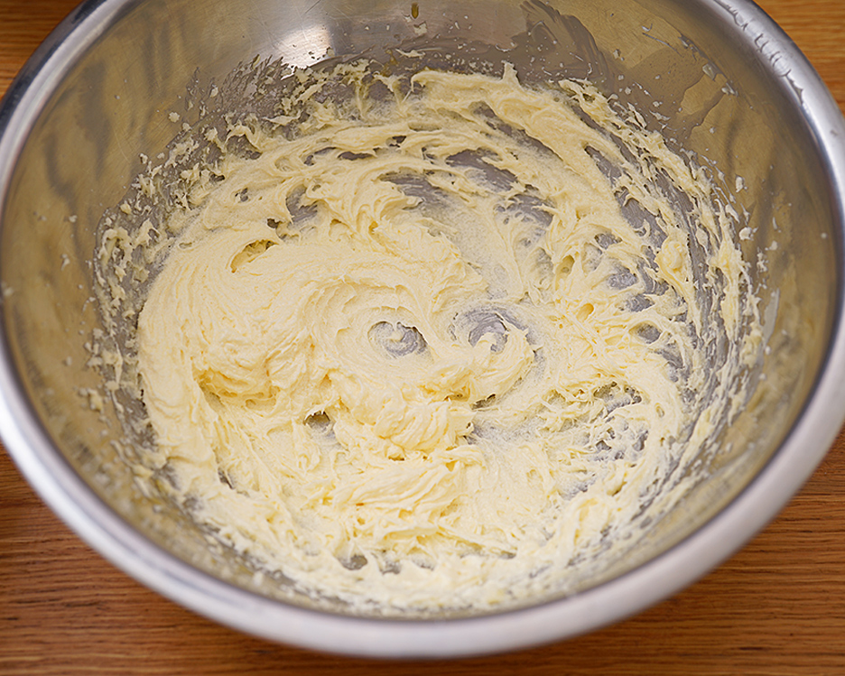 재료 : 버터 50g, 설탕 90g, 소금 1g, 달걀 30g, 우유 30g, 중력분 130g, 베이킹소다 2g