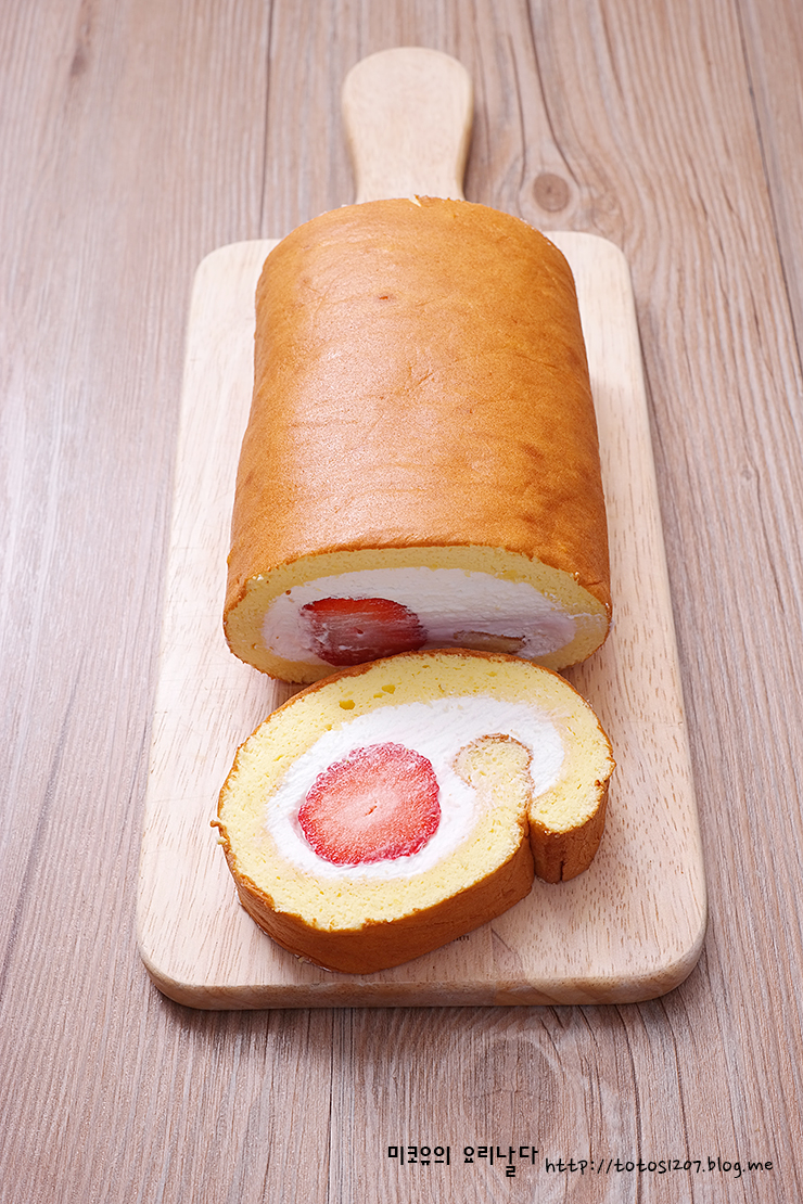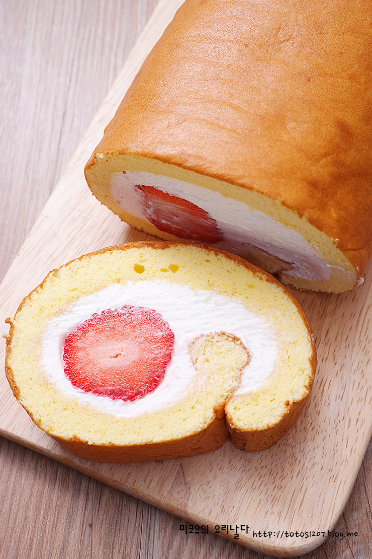 지난 번 도지마롤에 힘입어 만들어본 딸기 롤케익입니다.