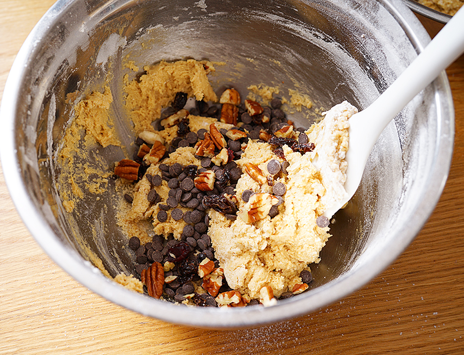 7. 초코칩과 함께 크게 다진 피칸을 넣어 줍니다.