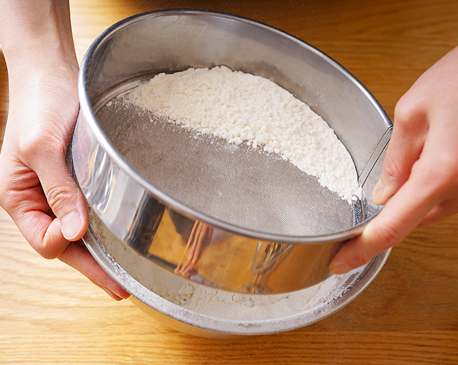 5. 박력분과 베이킹파우더를 체 쳐 넣습니다.
