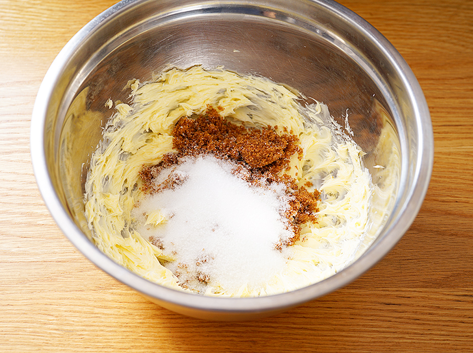 재료 : 버터 85g, 흑설탕 30g, 백설탕 20g, 소금 1g, 달걀 1/2개, 바닐라빈 익스트렉 5g,
