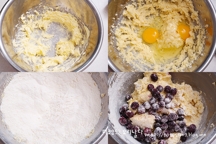 박력분 220g, 베이킹파우더 6g, 냉동블루베리 100g