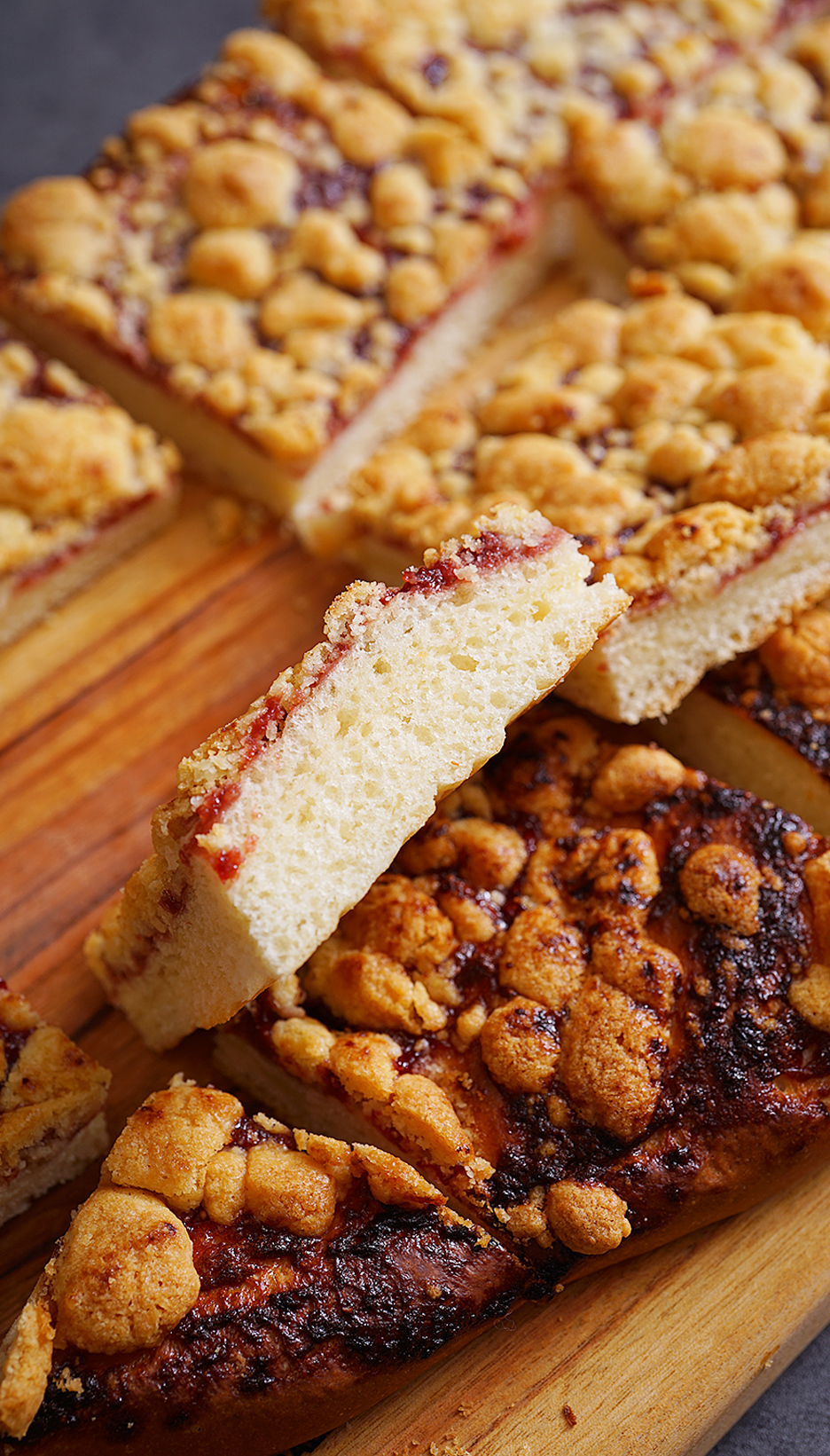 폭신한 빵 반죽과 위의 바삭한 쿠키 반죽이 잘 어울려서 꼭 딸기파이를 먹는 것 같은 느낌을 받을 수 있습니다.