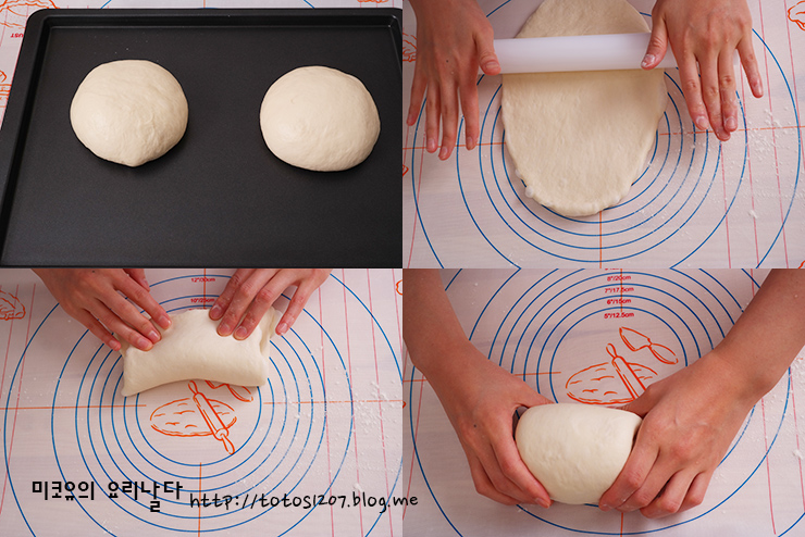 4. 반죽을 두덩이로 나눠 둥글리기 하고, 다시 30분간 중간발효 합니다.