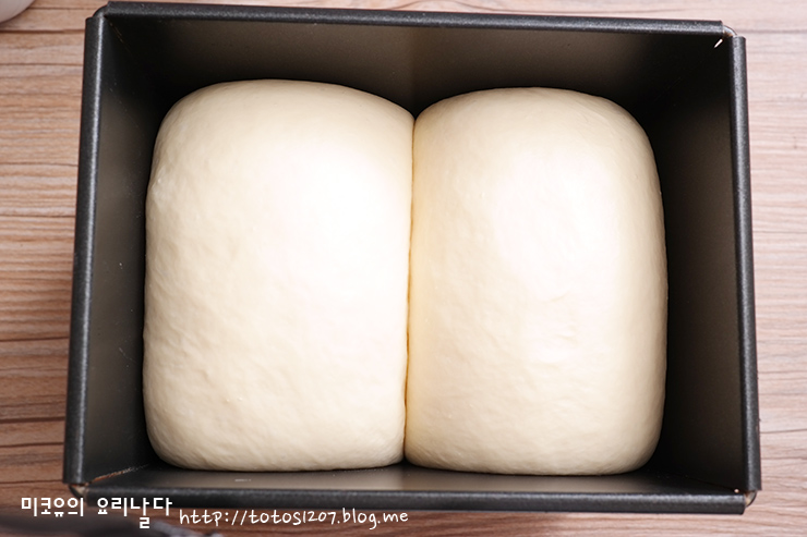 6. 틀 높이 2 ~ 3cm정도 아래까지 부풀도록 2차 발효 한 뒤 뚜껑을 덮어 185도 예열된 오븐에서, 35 ~ 40분 구워주면 완성입니다.