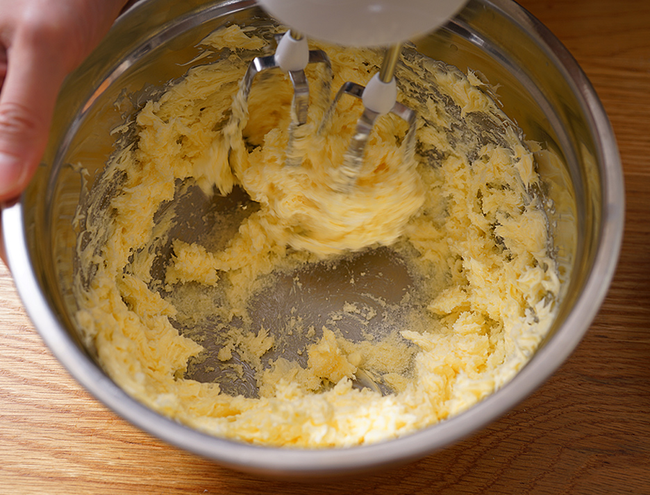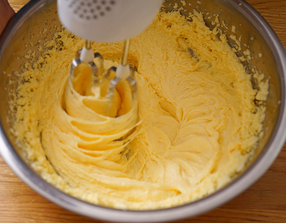 1. 상온의 버터를 휘핑하다 설탕을 넣고 휘핑해 주세요.