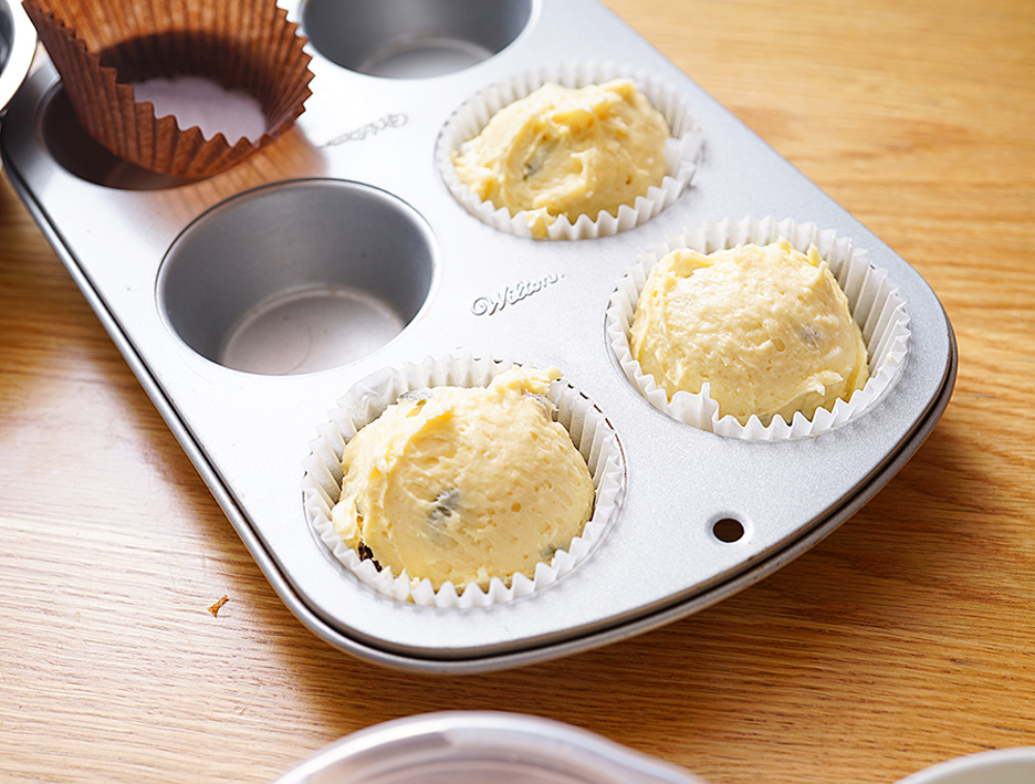 7. 머핀틀에 유산지를 깔고 반죽을 채워 주세요.