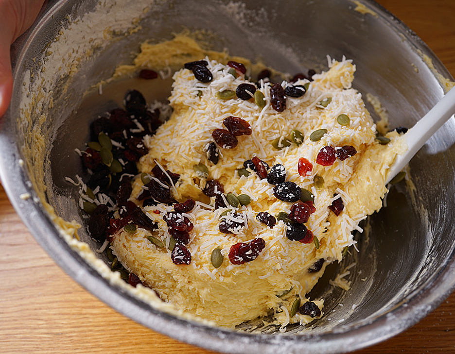 6. 건과일, 호박씨, 코코넛가루 혹은 코코넛롱을 넣고 잘 섞어 주세요.