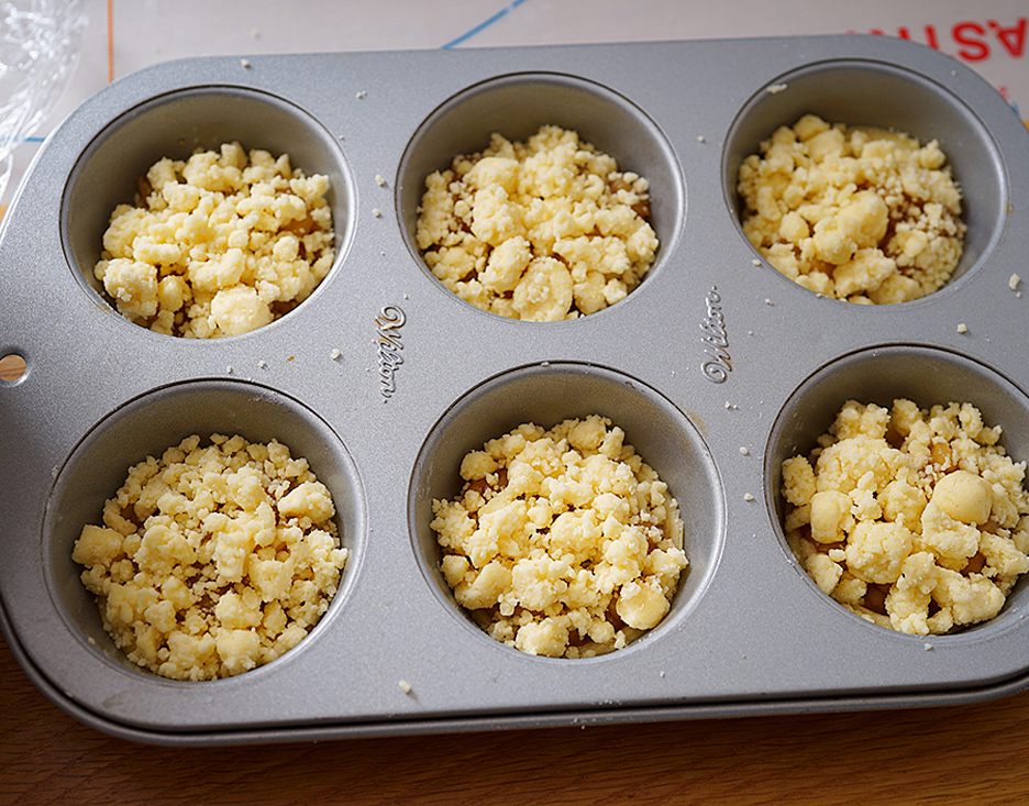 파이지 위에 사과필링을 올리고, 그 위에 크럼블을 듬뿍 올린 애플 크럼블인데요.