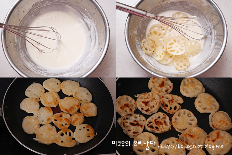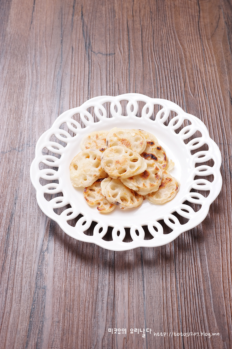 부침가루에 묻혀 앞뒤로 노릇하게 부쳐봤어요. ^^