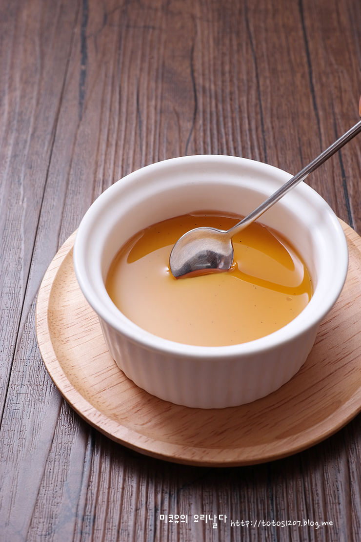 3. 푸딩 병에 담아 냉장고에서 1시간 이상 식혀두었다가 굳으면 메이플시럽을 약간 뿌려 드시면 좋아요.