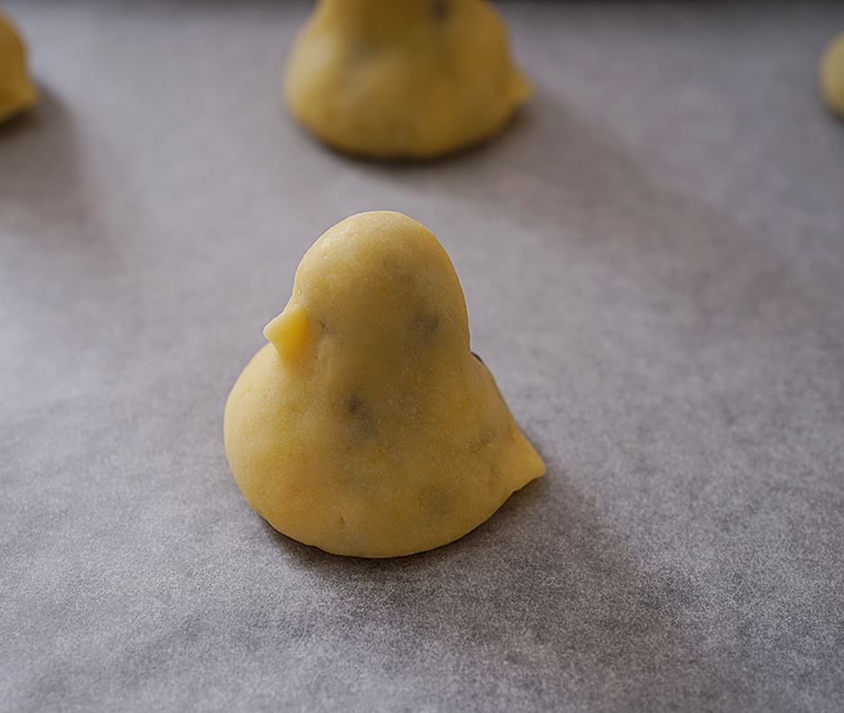 8. 커피와 계란 노른자를 섞어서 부리와 꼬리에 발라 주세요.