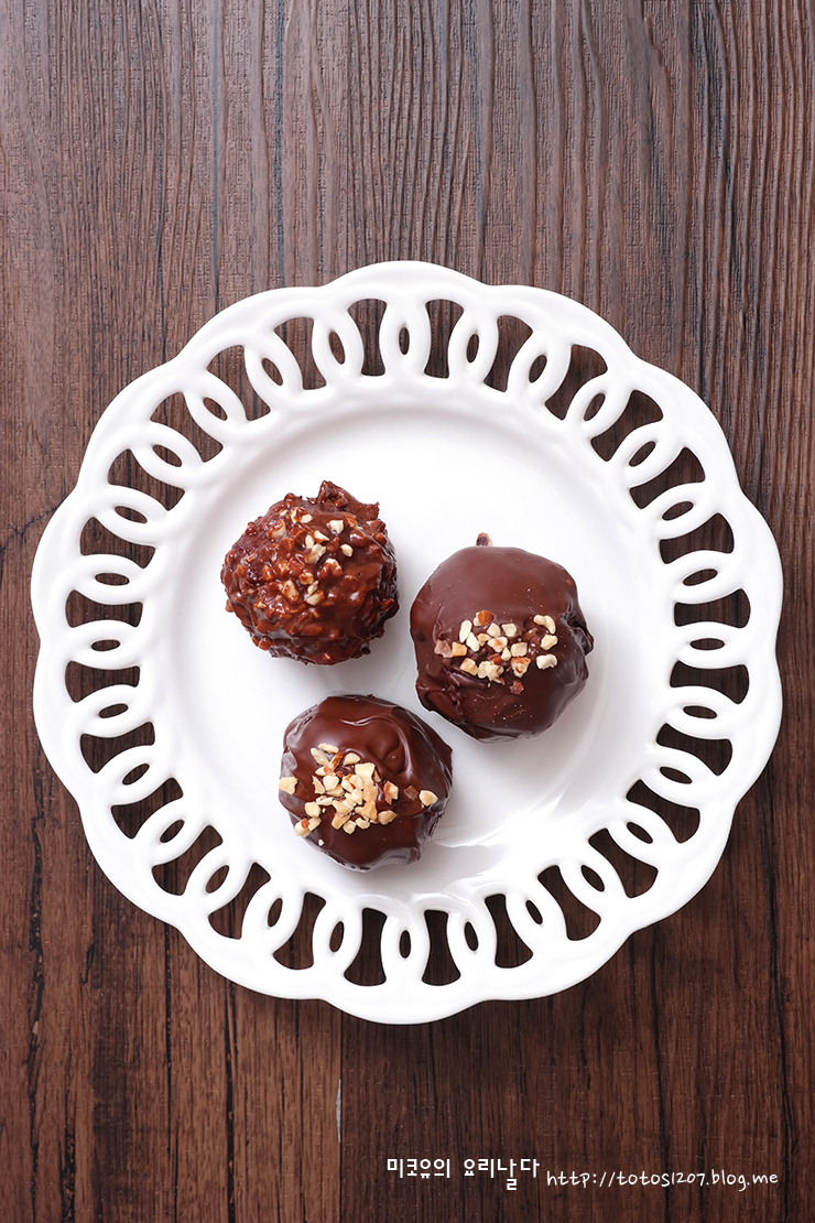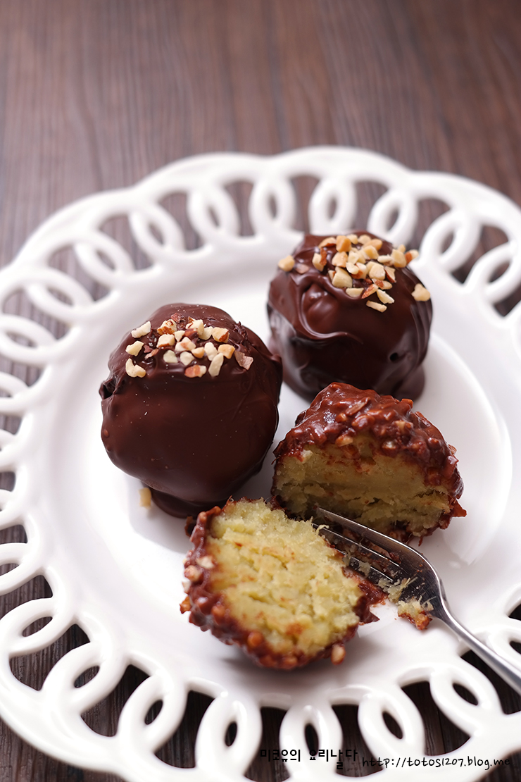 달콤한 초컬릿 코팅을 입혀 달콤한 디저트로 활용했답니다.