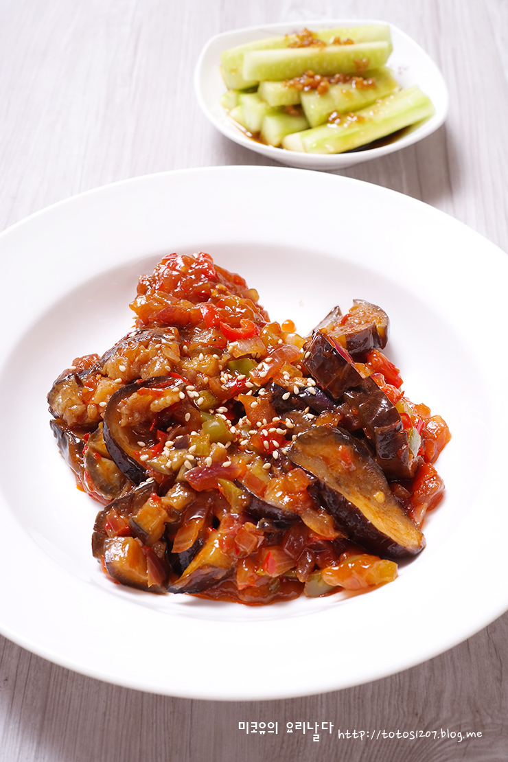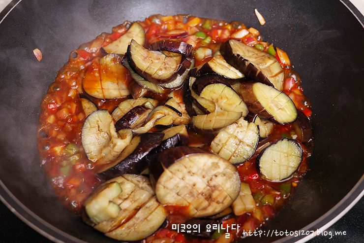 가지를 물컹해질 정도 푹~~ 익혀야 양념이 쏙쏙 베여 더 맛있어요.