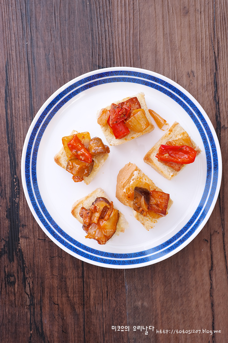 채소로만 볶아서 식빵 위에 올려줘도 괜찮아요.