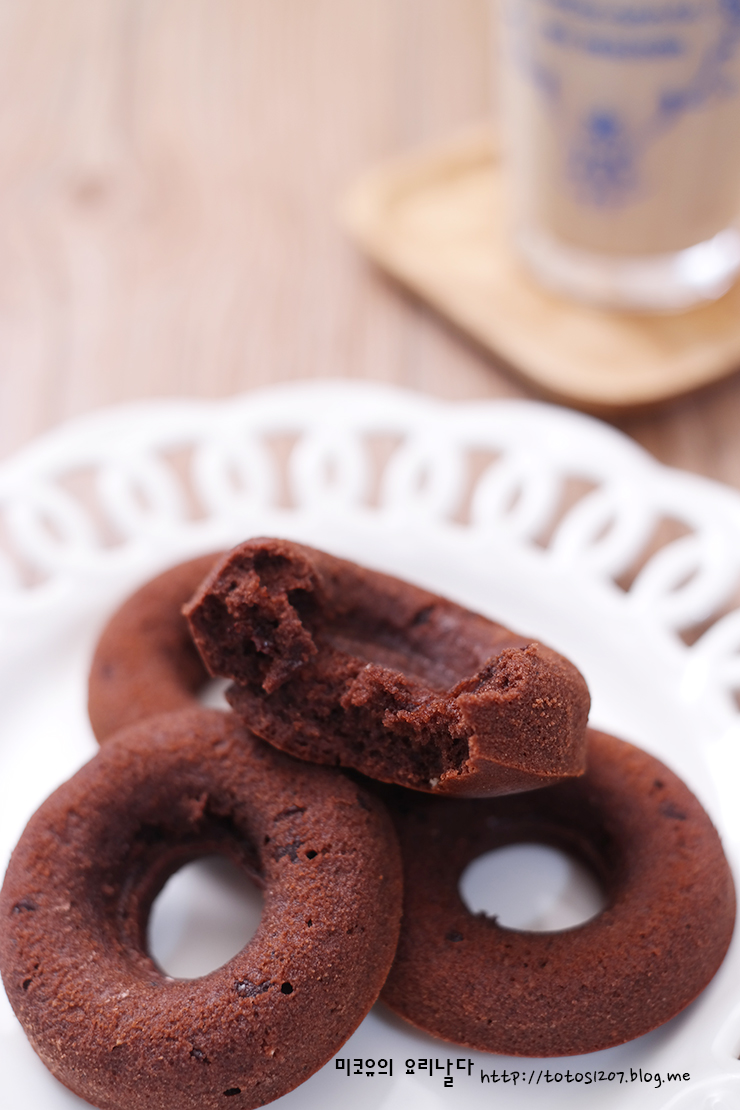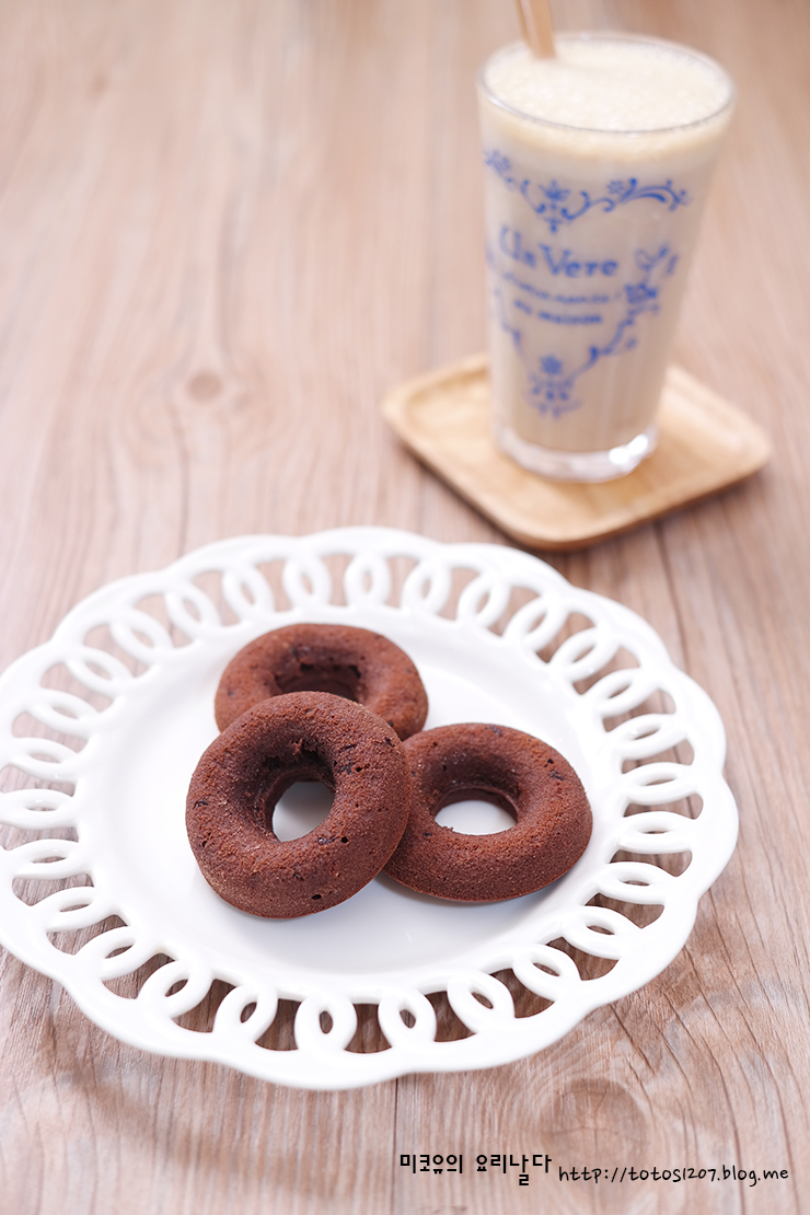 도넛 틀에 굽지 않고, 머핀 틀을 사용하면 초코머핀으로 만들 수도 있고요.