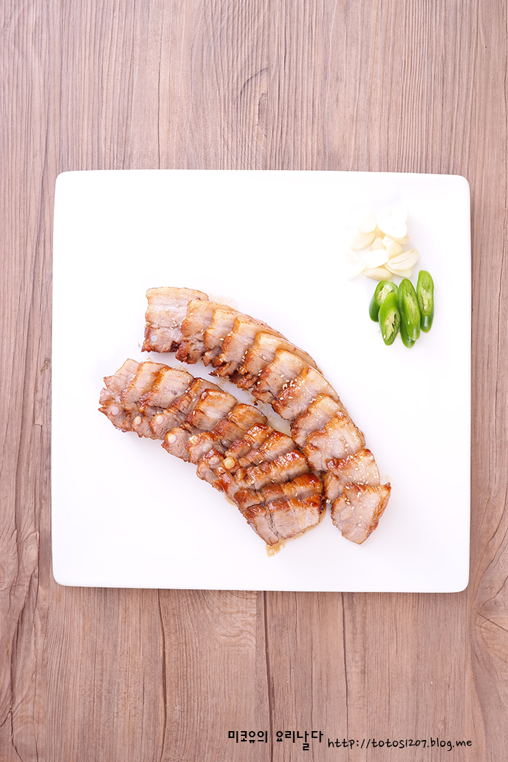 지난주 손님 초대요리로 만들었던, 바싹 돼지고기 보쌈입니다.