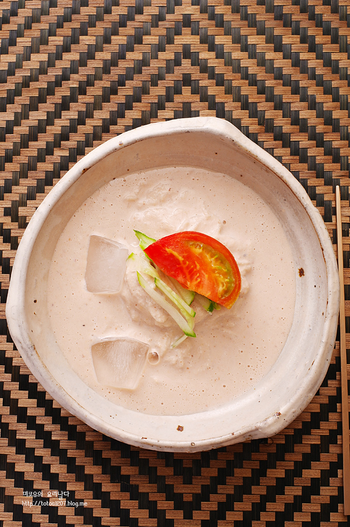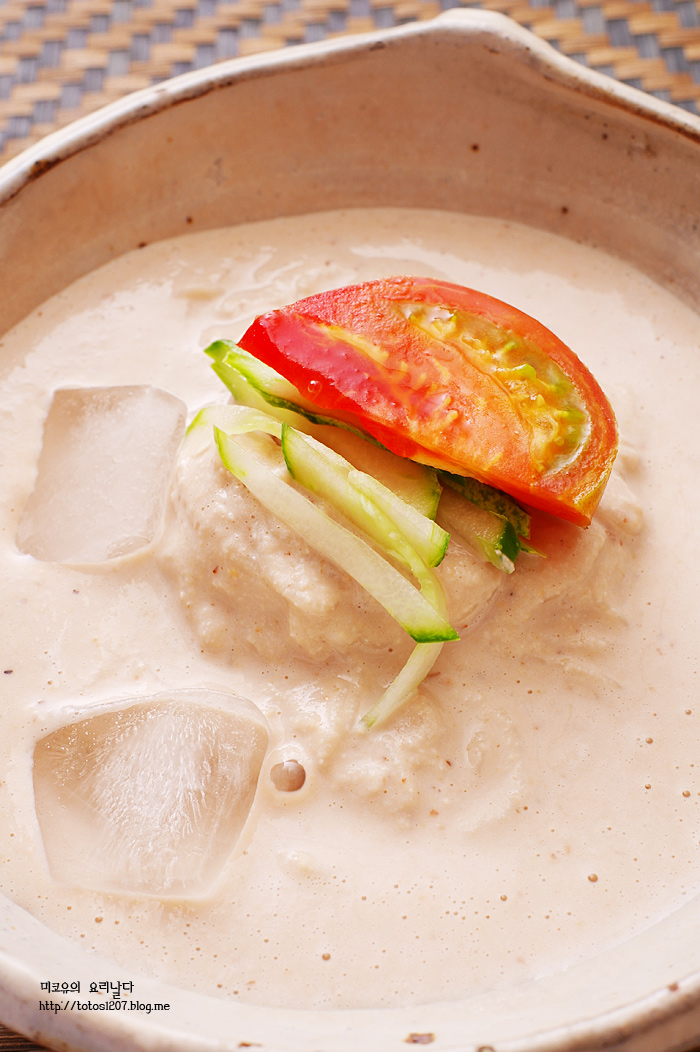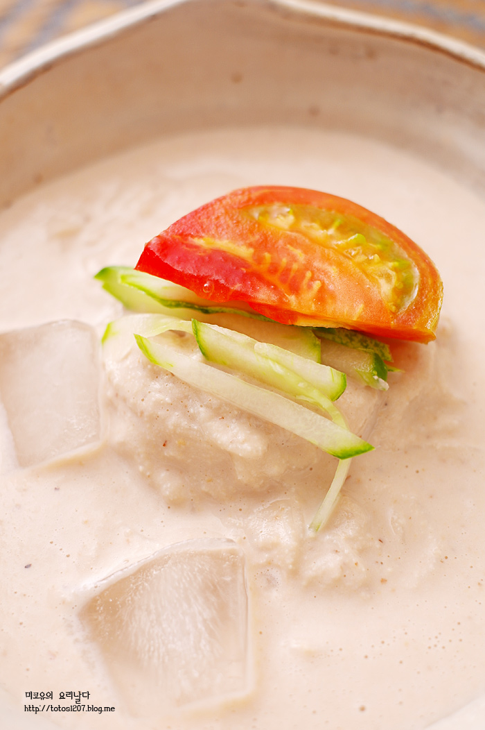 잣이나 땅콩도 좋구요. 견과류와 두부를 조금 넣고 함께 갈아 주시면 더욱 고소한 콩국을 만들 수 있답니다.